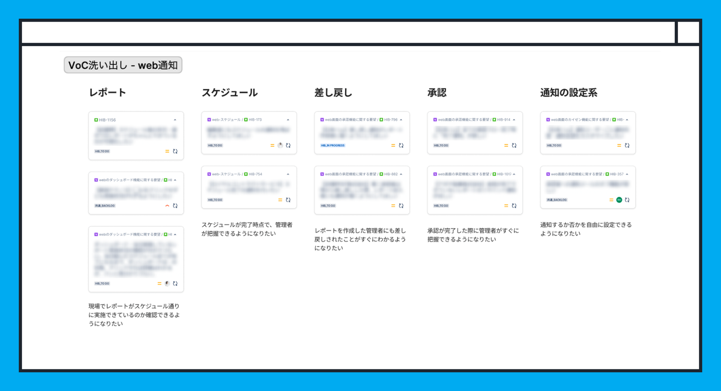 根拠なしに想像だけで作りはじめてしまうと使えないものになってしまう可能性が高いため、次に私たちは既存顧客のVoC(Voice of customer)をまとめました。