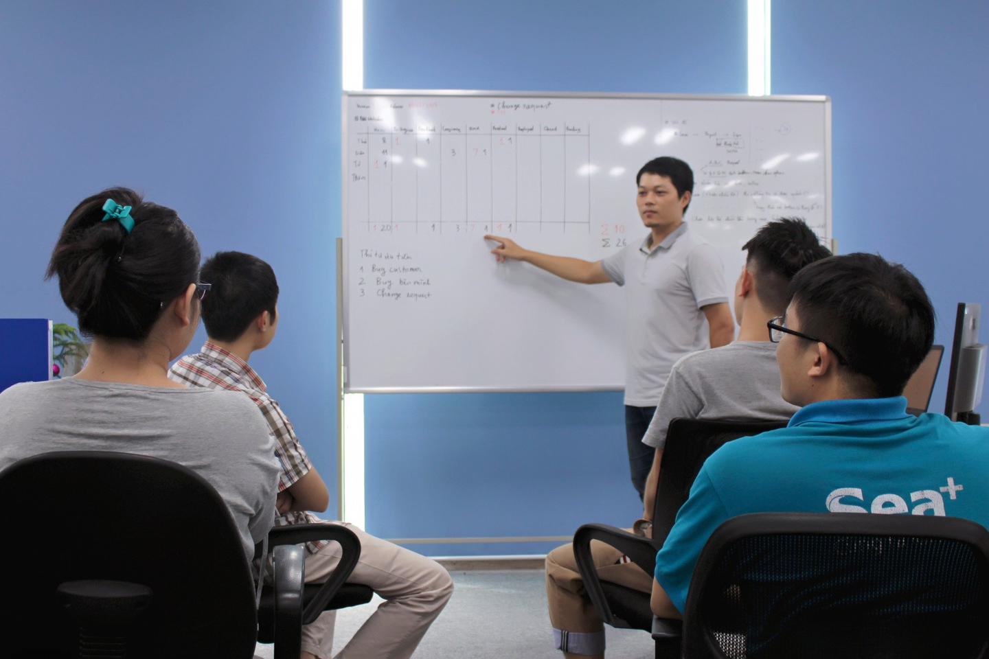 そうですね。週に一回、BrSEを集めて勉強会を行っています。カオピーズではBrSEがPMも担うことが多いので、その週に起きた問題を共有し、その解決策を考えたり、プロジェクトの進め方を勉強しています。
