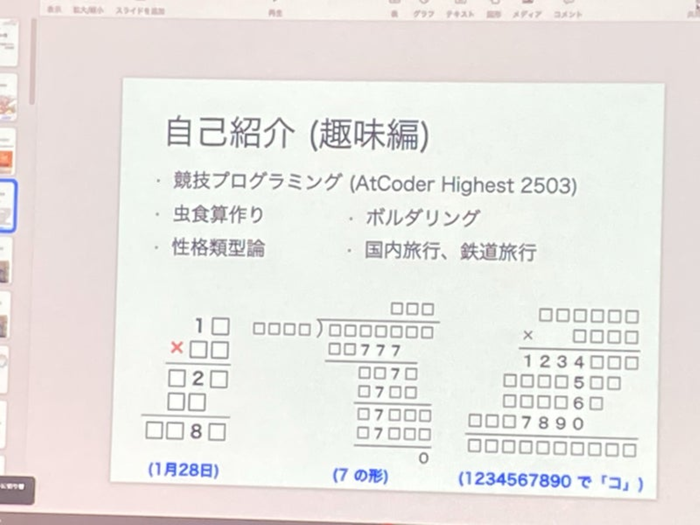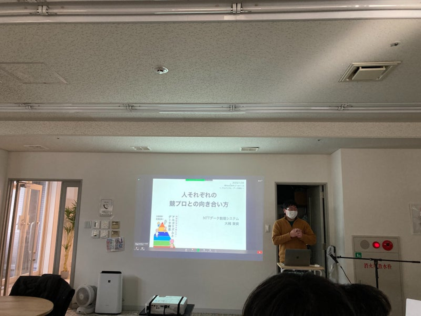 そして、ついに今回のメインである勉強会です。競技プログラミングという分野の勉強会で、この道では有名なけんちょんさん(@drken1215)が登壇してくれました。