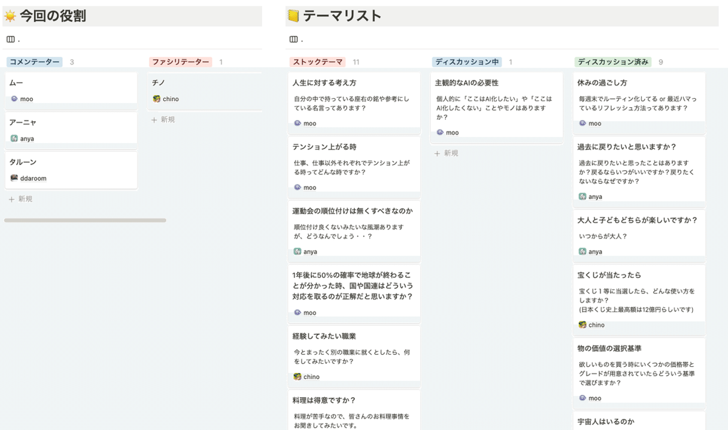 隔週1回、テーマと役割を決めて、1時間ほど皆でディスカッションします。