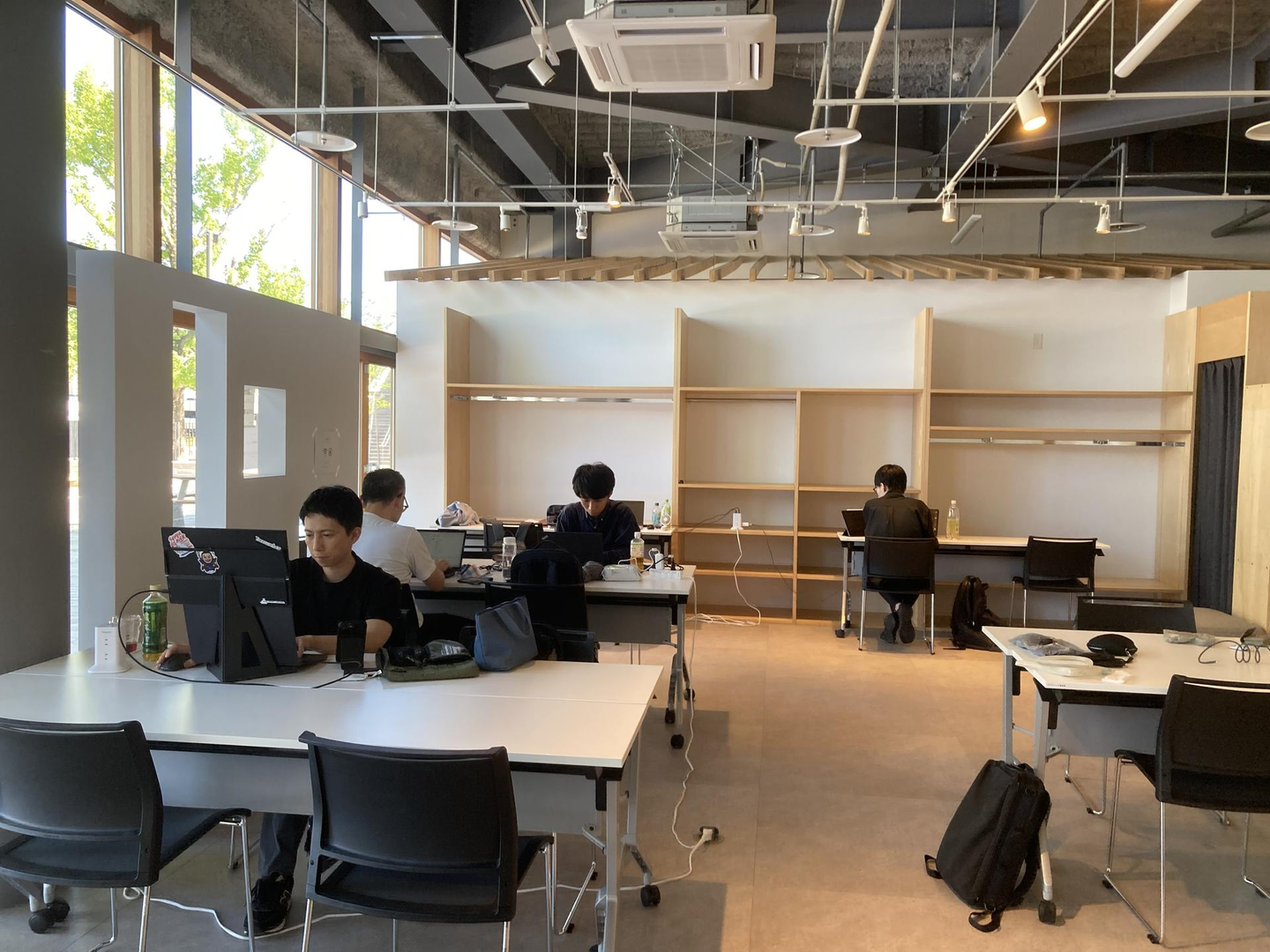 当日は「出入り自由」で、飛び入りの参加も大歓迎というスタイルで行われました。佐賀市内の行政機関の職員の方、地元企業(IT系含む)の方々、佐賀大学の学生さんなど、多様なバックグラウンドの参加者がコワーキングスペースに集まりました。カラビナのメンバーも自社の業務を持ち込みつつ参加者と交流し、終日和やかながらも刺激的な雰囲気でした。