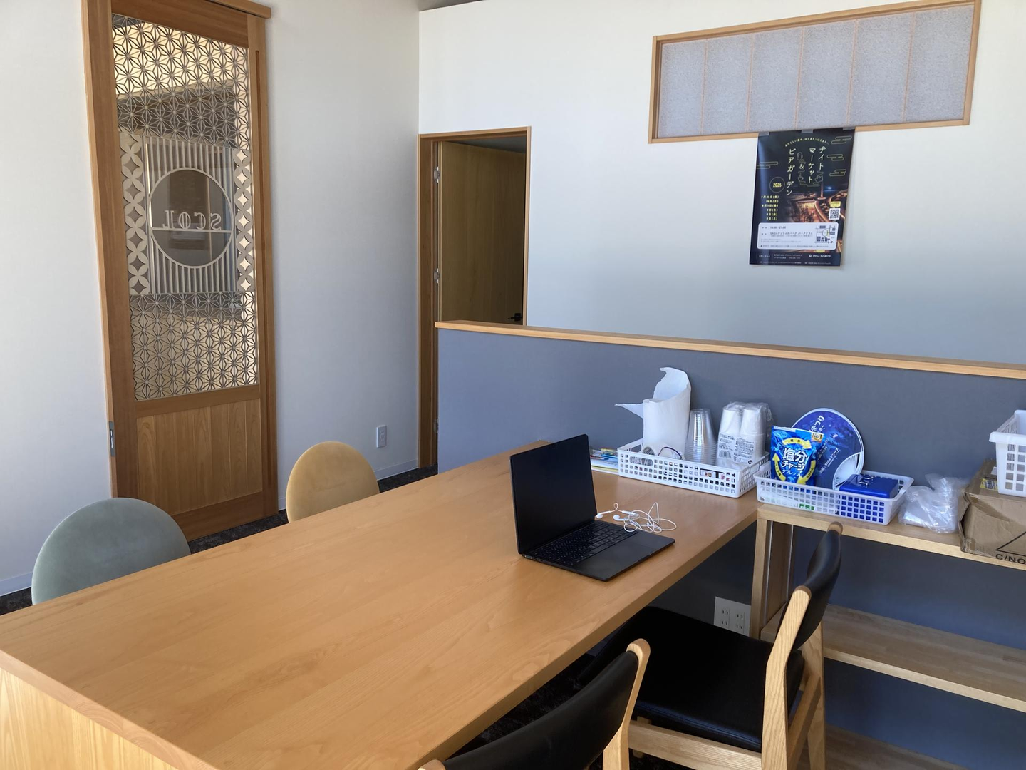 元々秋以降に新店舗オープン予定のスペースを活用し、7月1日から8月後半までの限定で「企業・起業家ファースト」の実証フィールドとして運営されています。その名の通り“涼風(RYO-FU)”を感じられるような居心地の良い空間で、佐賀の夏の暑さの中でも快適に作業や交流ができる工夫がなされています。