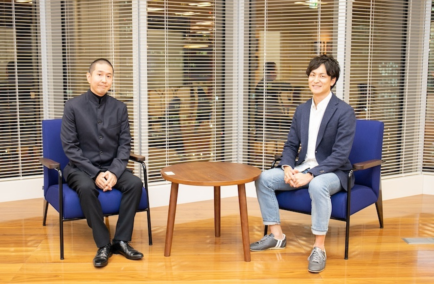 ▲ヤフー株式会社執行役員、株式会社GYAO代表取締役である田中祐介氏(写真左)とカラダノート代表取締役の佐藤竜也(写真右)。15年前、ベンチャー企業の社長と、学生インターンとして出会うところから始まる。