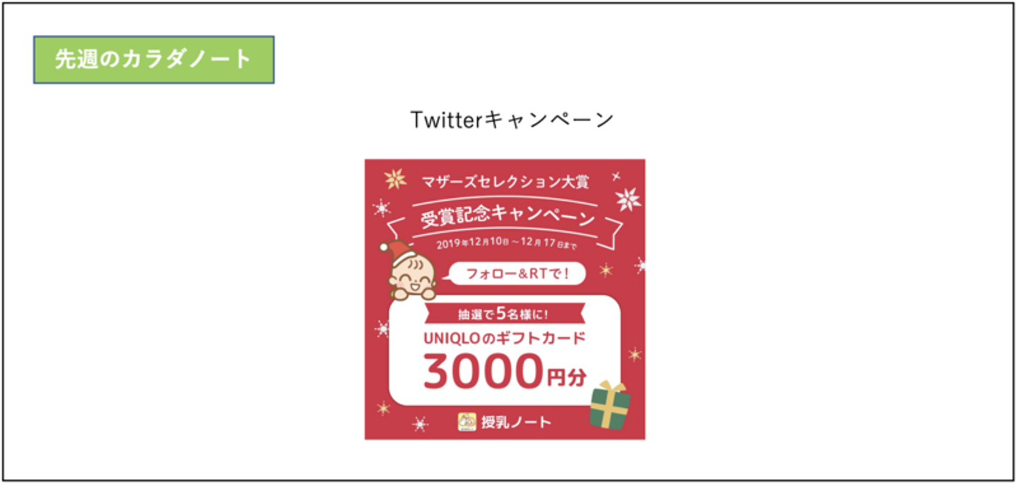 弊社アプリ「授乳ノート」と「ステップ離乳食」がマザーズセレクション大賞を受賞したことを記念して、ギフト券が当たるtwitterキャンペーンを実施しました。多くの方にご参加いただけただけでなく、温かいメッセージもいただくことができました。