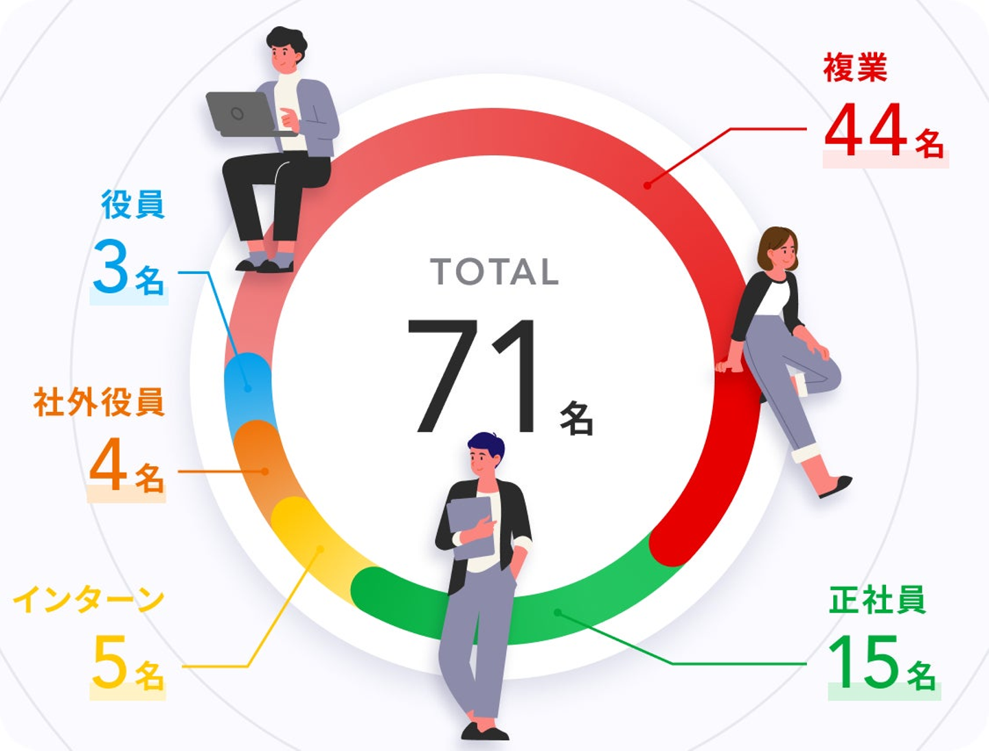 カウシェでは、複業として関わるメンバーが6割強を占めています。