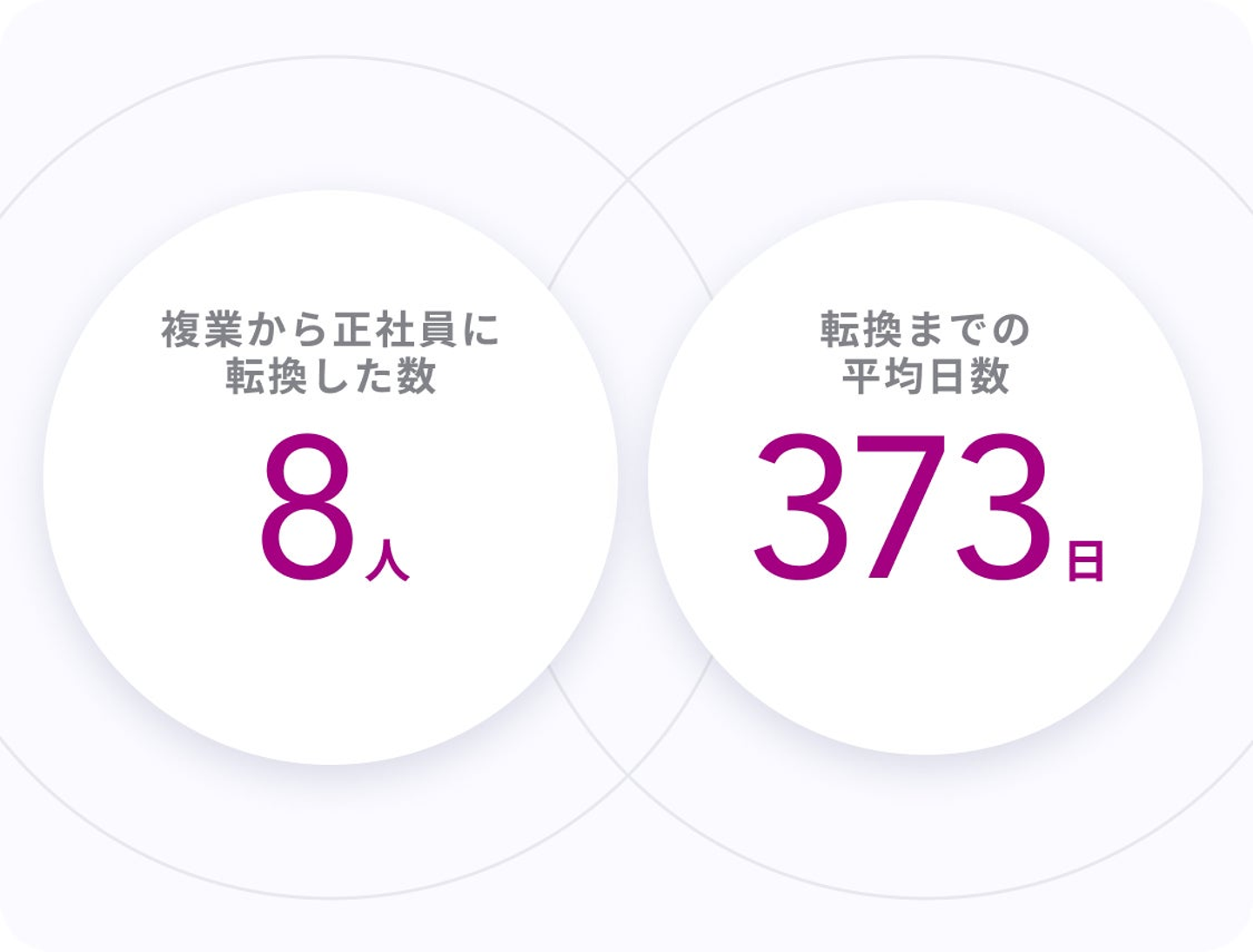複業から正社員に転換したメンバーの人数、および転換までの平均日数