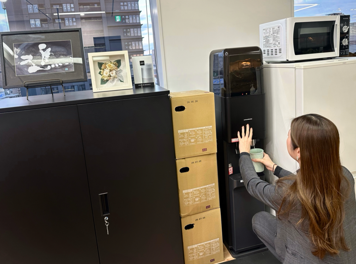 冷蔵庫、電子レンジ、ウォーターサーバーを完備しているので