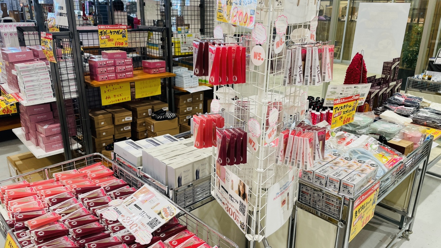 全国に進出している半額倉庫の中で、当社では下記2店舗を運営しています。2022年9月より「りんくう」の運営を開始、2022年12月には無人の「千林商店街店」をオープンしました!