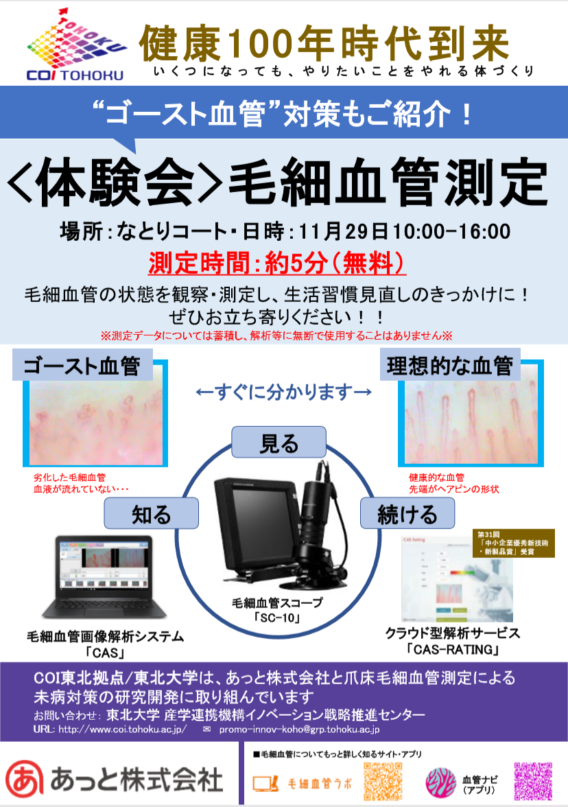2019年11月29日 10時~16時、イオンモール名取で毛細血管測定会を実施しました!