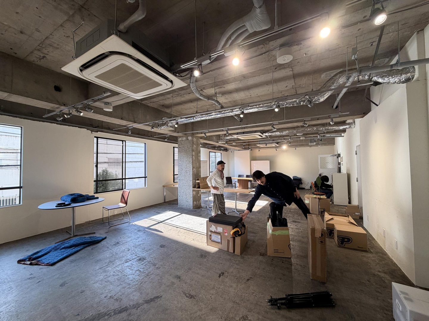 なんてわちゃわちゃ話していたら、まったくまとまらないまま事前の内装工事もあきらめ、がらーんとしたスペースにとりあえず入る形になりました。