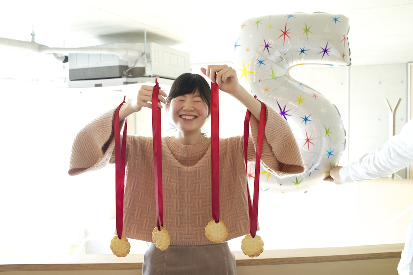(きびだんごの新卒第一号・長島からサプライズでメダル贈呈式もありました!)