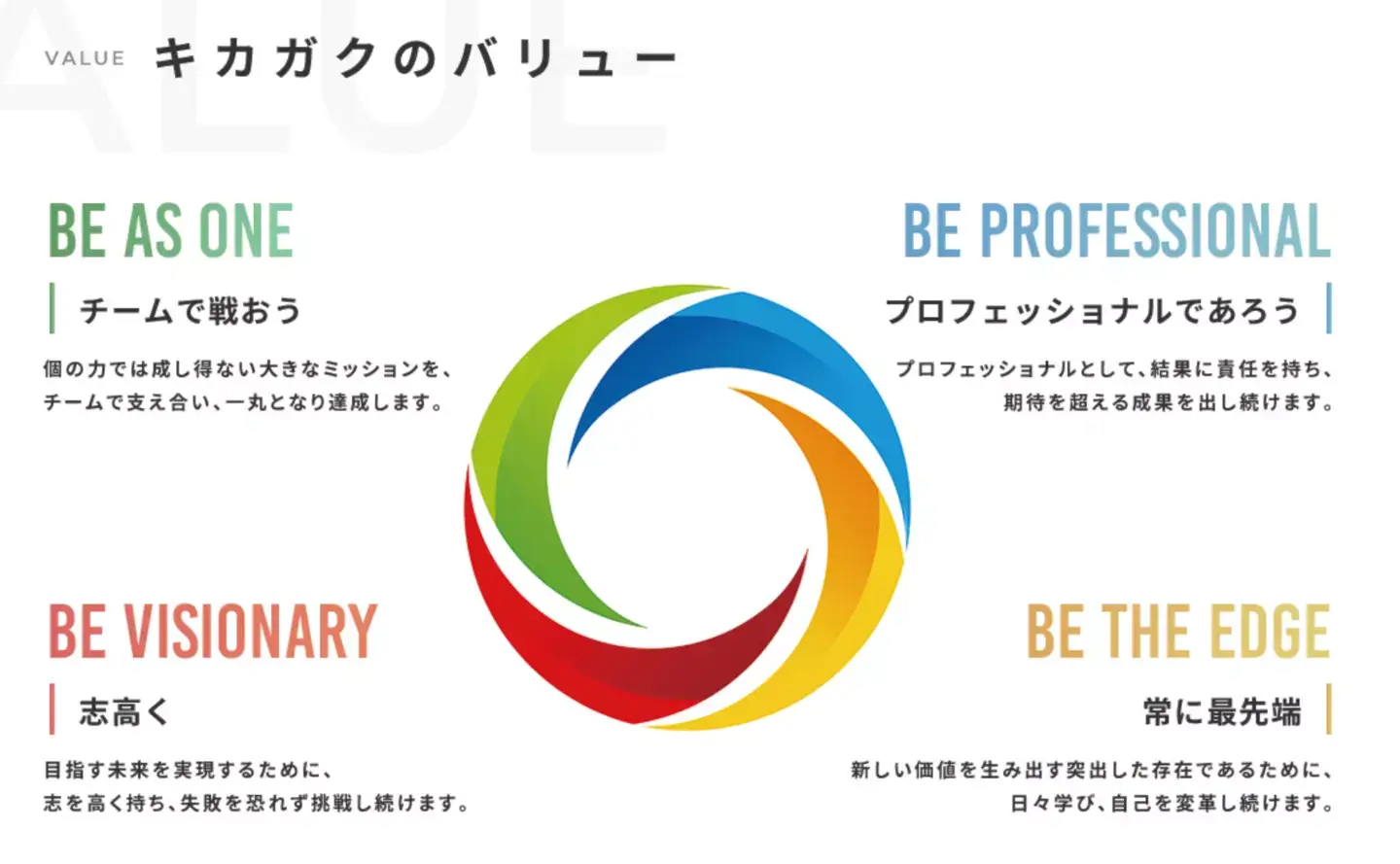 キカガクのビジョンに「Be the edge」という言葉があります。教育界の最先端をいくという強い志の現れで、僕が大好きなビジョンです。しかし、最先端は常に磨き続けないと、あっという間に丸くなり、周囲と同じになってしまいます。経営陣も、入社して間もない先輩も、最前線で活躍する先輩も、常により高い姿を目指して自分の腕を磨き続けています。