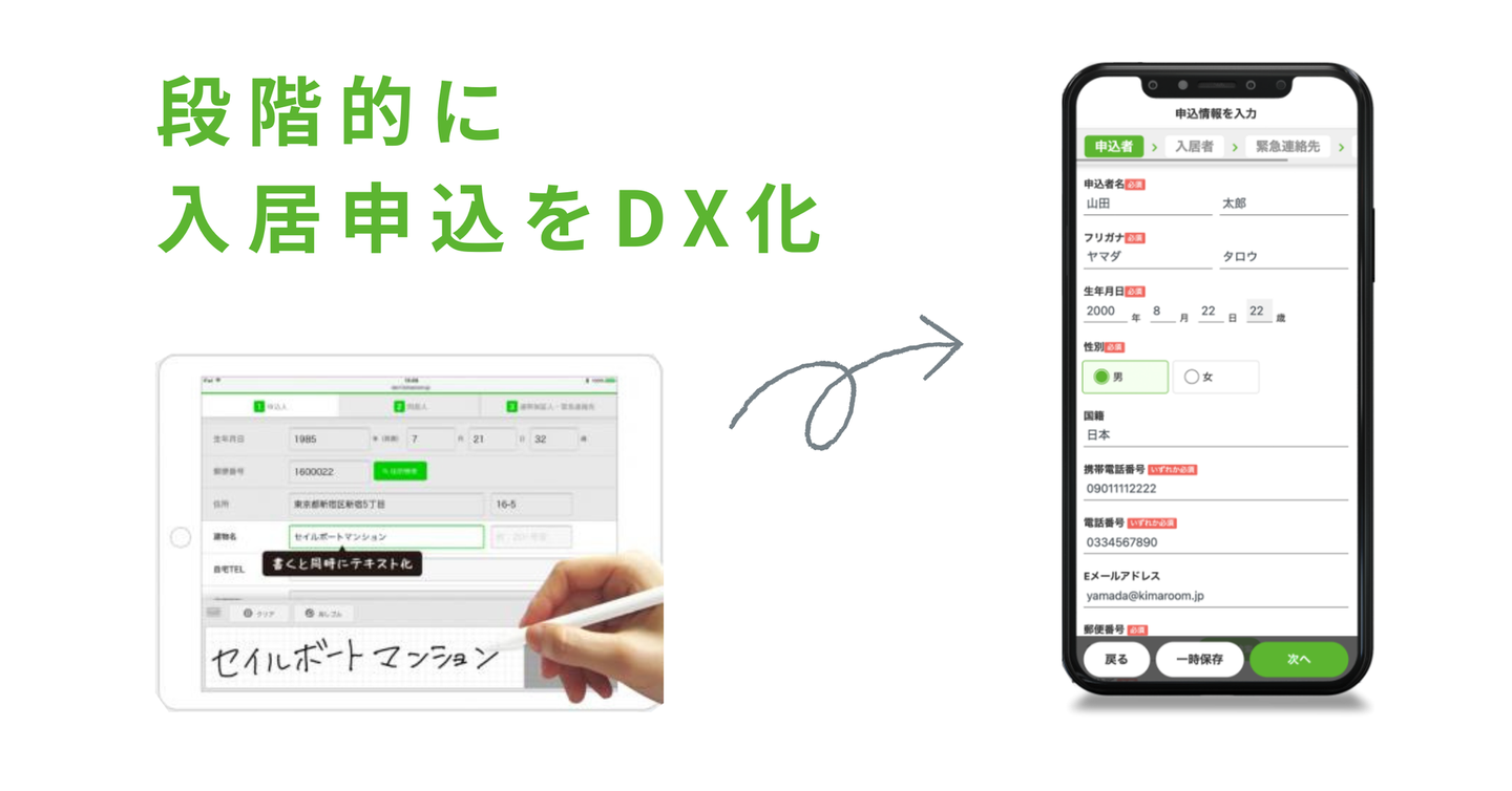 吉村)今まで紙で行っていた業務を、突然スマホに置き換えますというのは市場には受け入れられないのではないかとまずは考えました。そのため、紙申込での体験に近い「タブレットで入力」という方法でまずは段階的に市場に浸透しやすい仕組みでリリースし、現在のスマホからも申込ができる形に進化していきました。