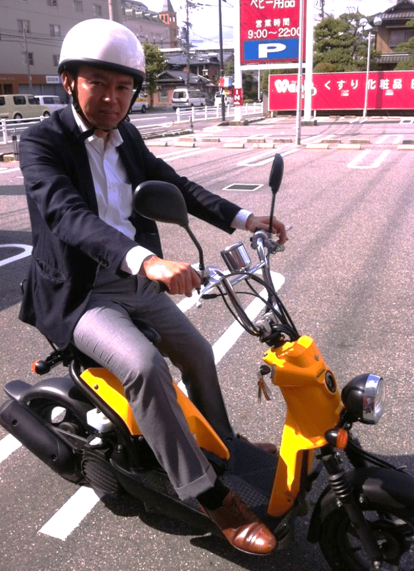 藤井)そうですね、熊本で営業していた時の話です。私が入社した前の年にリーマンショックが起きまして。それまで営業はレンタカーで外回りをしていたのですが、経費削減で中古の電動自転車を支給されて、熊本の交通センターから毎日30軒くらい自転車で飛び込み営業をしたのは、いい思い出ですね。担当エリアの中に競輪場があったので、近くの道路で練習する競輪選手と一緒に走っていました。笑