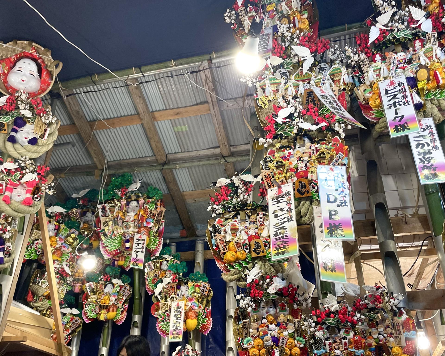 酉の市の名物といえばたくさんの縁起物で飾られた熊手。