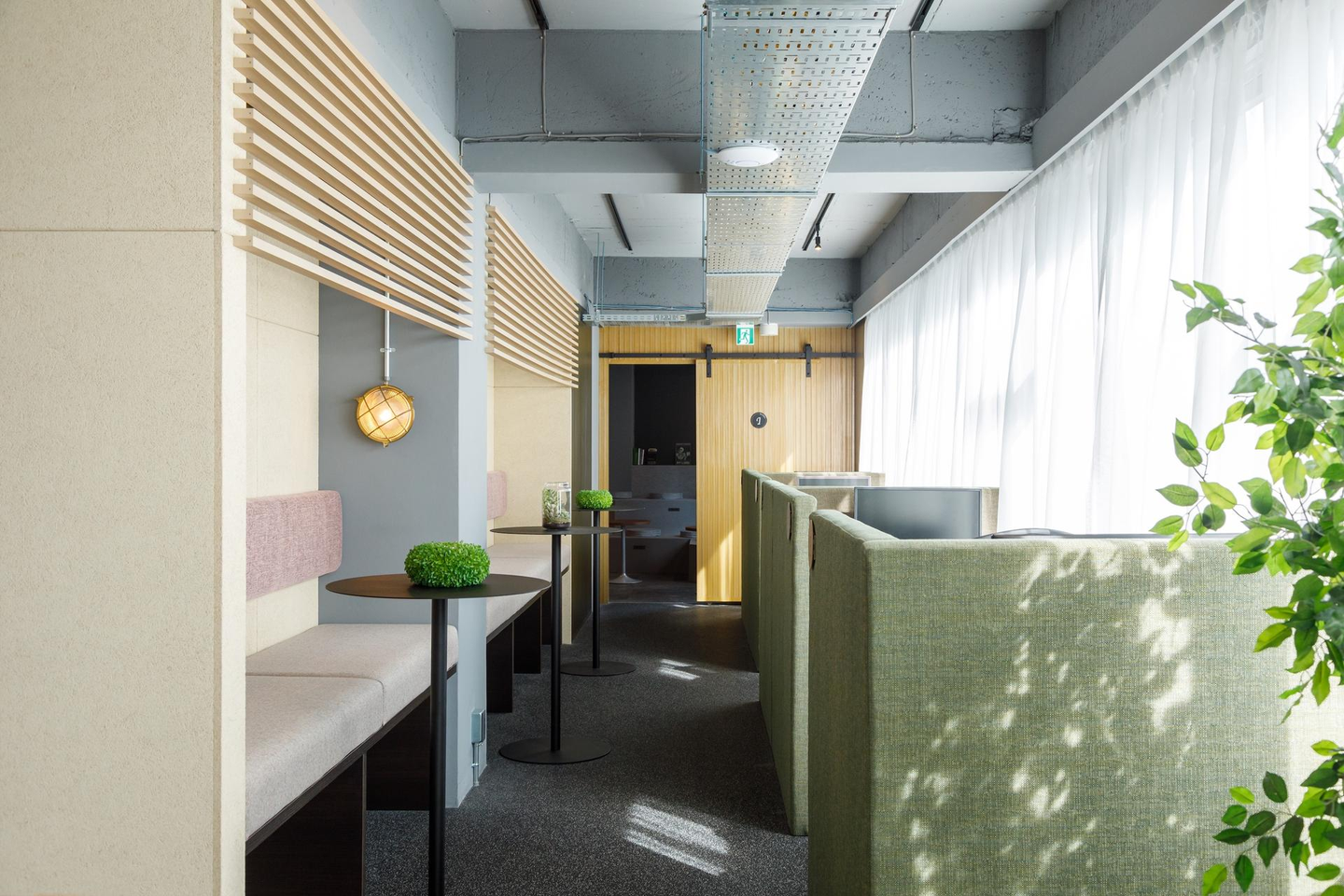 始まりはリモートワークの浸透に伴うオフィスの減床、リニューアルの相談でしたが、打ち合わせを重ねる中で移転リニューアルの計画に変更となりました。 計画地は8階建オフィスビルの6階部分、約90坪の空間です。 全体で100名ほどのの社員が在籍する企業ですが、日常的に出社するのは20〜30名とのことで、固定席は設けずに全体を50席ほどのフリーアドレスとしました。 ...