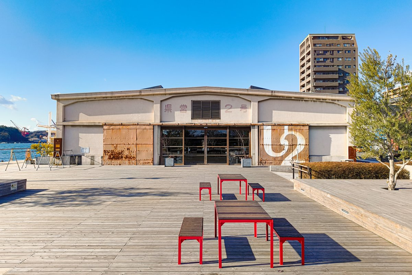 ONOMICHI U2は、1943年に建てられた「県営上屋(うわや)2号倉庫」という名称の海運倉庫をリノベーションし、ホテルやカフェ、レストラン、自転車のプロショップなどが一体となった複合施設です。