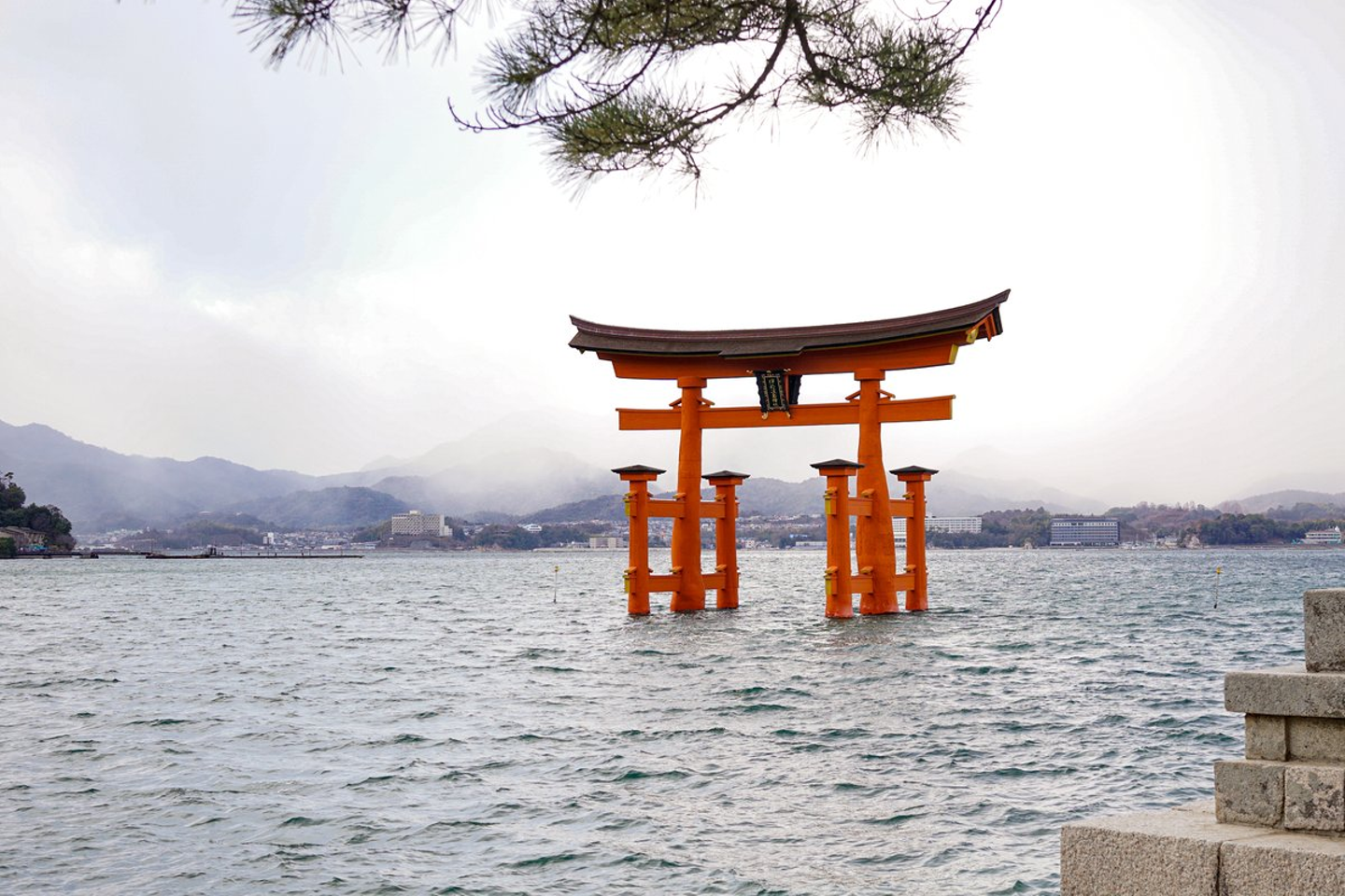 満潮時の大鳥居も見ることができました。海に浮かぶ鳥居は干潮時とはまた違う美しさ。