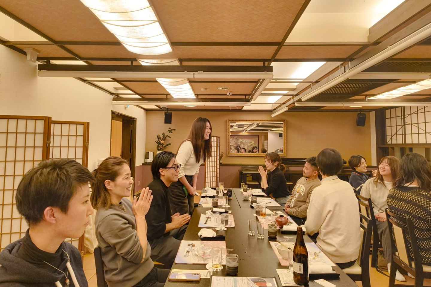 1月入社の本田さんはなんと社員旅行で初めまして。乾杯の前に入社挨拶をしてくれました。