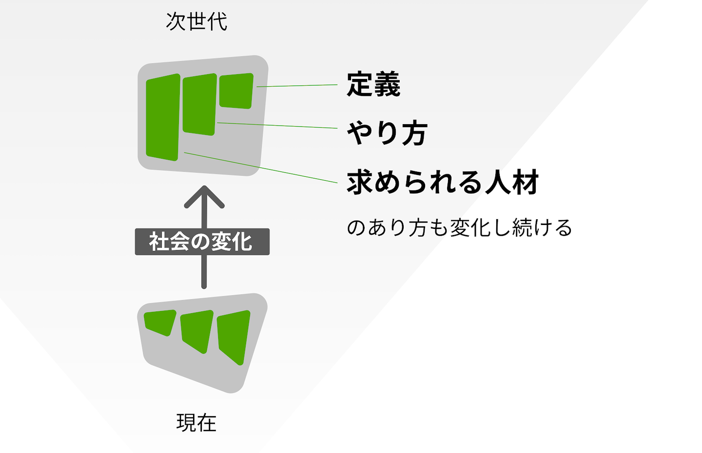 その考え方の社会だと、教える人が限界になって、それ以上の広がりが生まれない可能性もあります。このように社会の変容と共に教育を再定義し続けることで、次世代の教育を作ります。