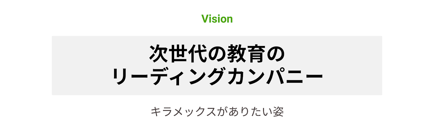 私たちのビジョンは「次世代の教育のリーディングカンパニー」になることです。