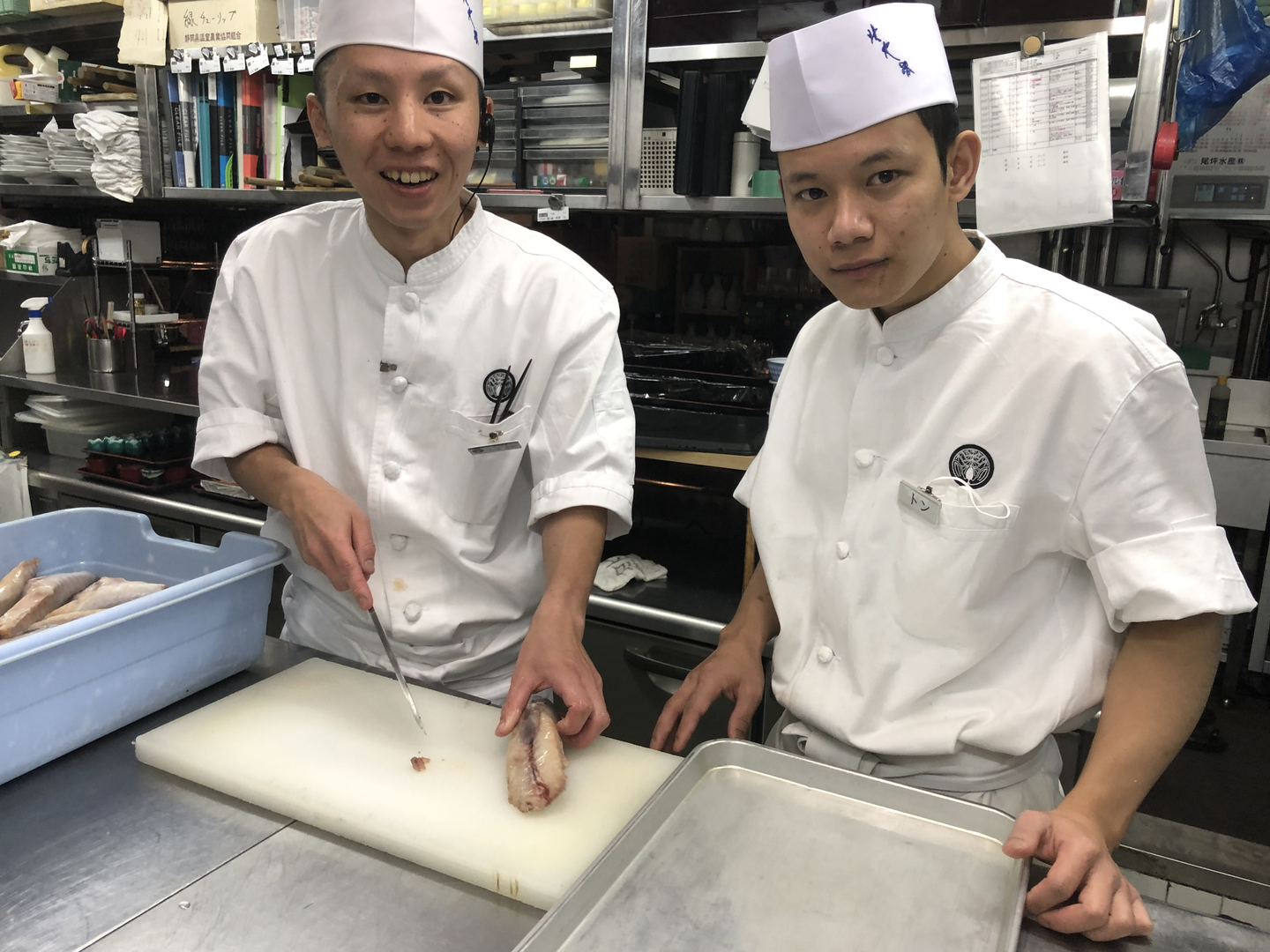板前スクールを開校し、新人教育にも重点を置いているため、教えて育てることでコーチも一緒にスキルアップできる環境が整っています。 最初は言葉で説明することに不慣れなだった板前さんも、教えることにやりがいを見出して、イキイキと働いています。