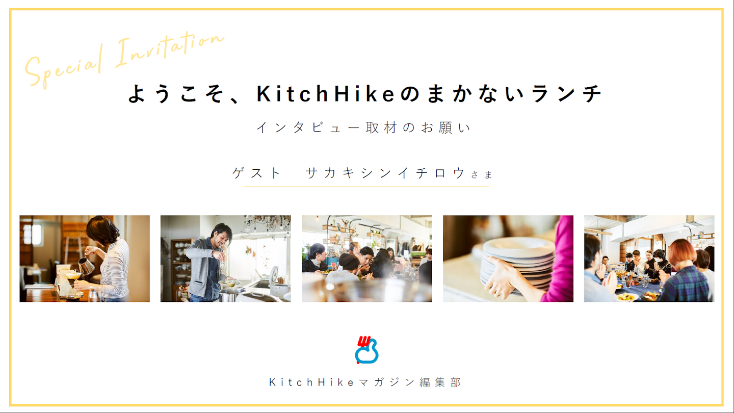 キッチハイクの強みは、毎日自分たちがまかないで「食でつながる暮らし」を当たり前のように体現しているところ。もし、キッチハイクがゲストをまかないにお誘いしたら?まるで、食でつながる楽しさの、おすそわけじゃないか。その「お誘い」さえもキッチハイク流に演出できたら・・・?
