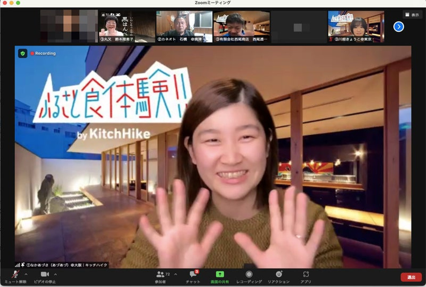 キッチハイクでは今年の2月ぐらいからふるさと食体験のオンラインイベントのファシリテーターやディレクターを担当しています。イベントの内容を決めて準備を進めていくのと、イベント当日の司会、進行などの運営ですね。