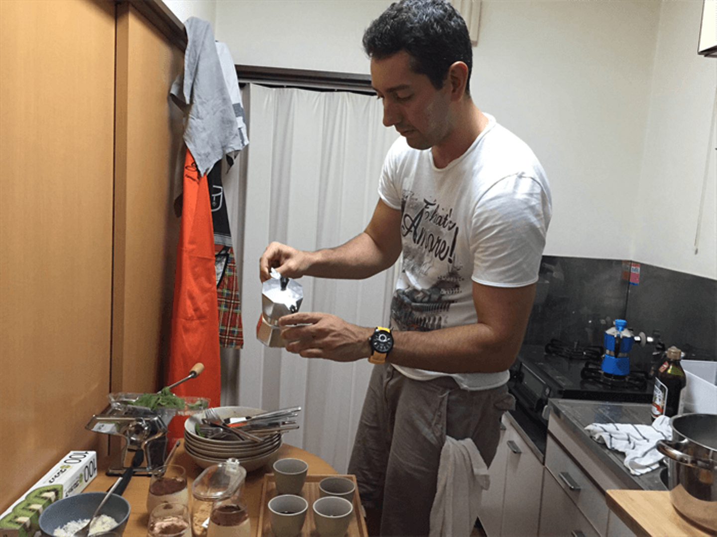 ちなみに最初、アレッサンドロさんが「国旗が出る」と言い間違えていたため、マキネッタの蓋からイタリアの国旗が出現するのかと参加者一同ワクワクしてキッチンを覗いていましたが、違いました (笑)。とはいえ、アレッサンドロさんの日本語はとてもとても流暢ですよ!