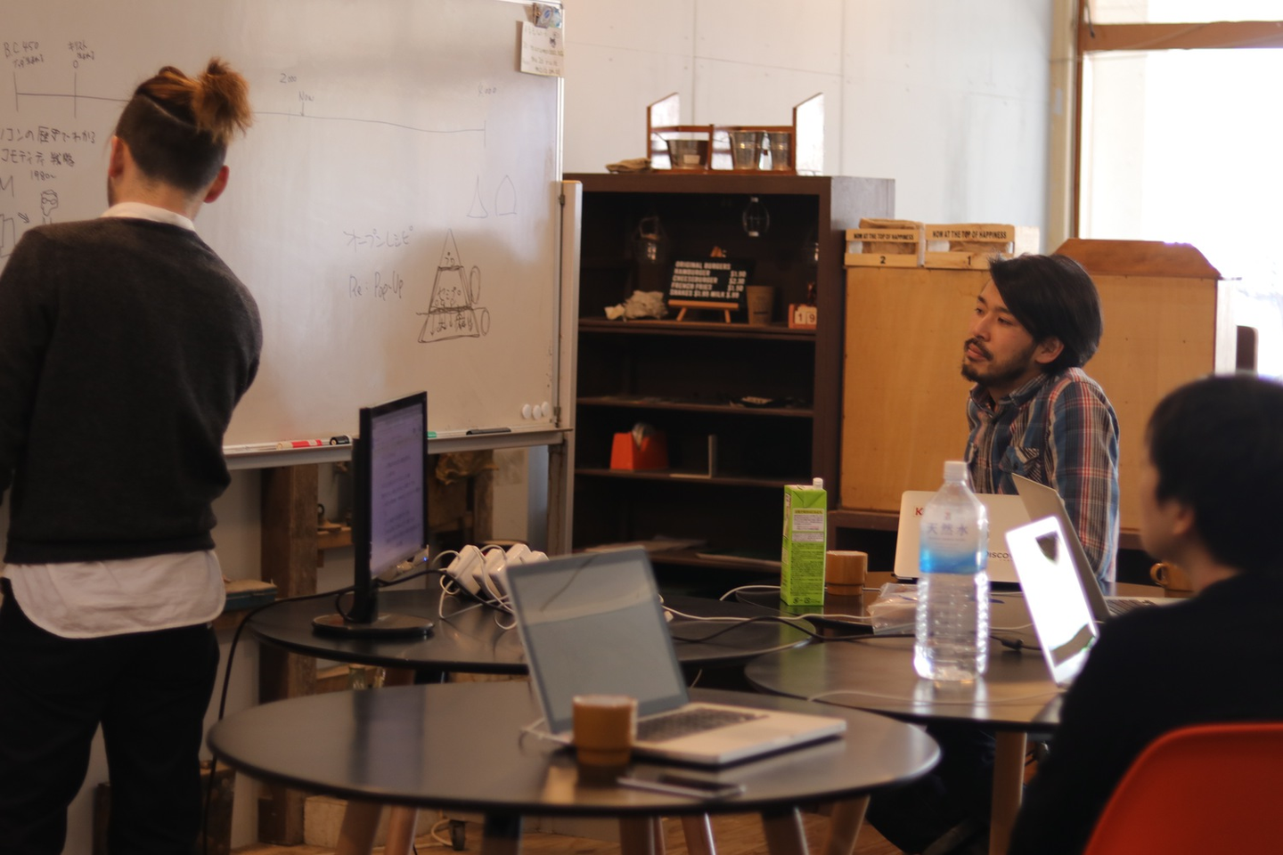 まるもの設備は充実していて、前述したホワイトボードからモニターやプロジェクター、一声かければ本格的な業務用キッチンまで使えます。ですが、まるも最高の設備はスタッフさんでした。着いたその日に近くの飲食店リストをメッセージで送ってくれるし、何か相談してもすぐに対応してくれるし、大変心強かったです。