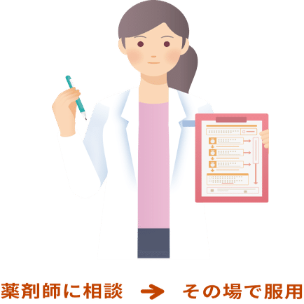 服用可能と判断された場合は、1錠をご購入いただき、薬剤師の前で服用します。