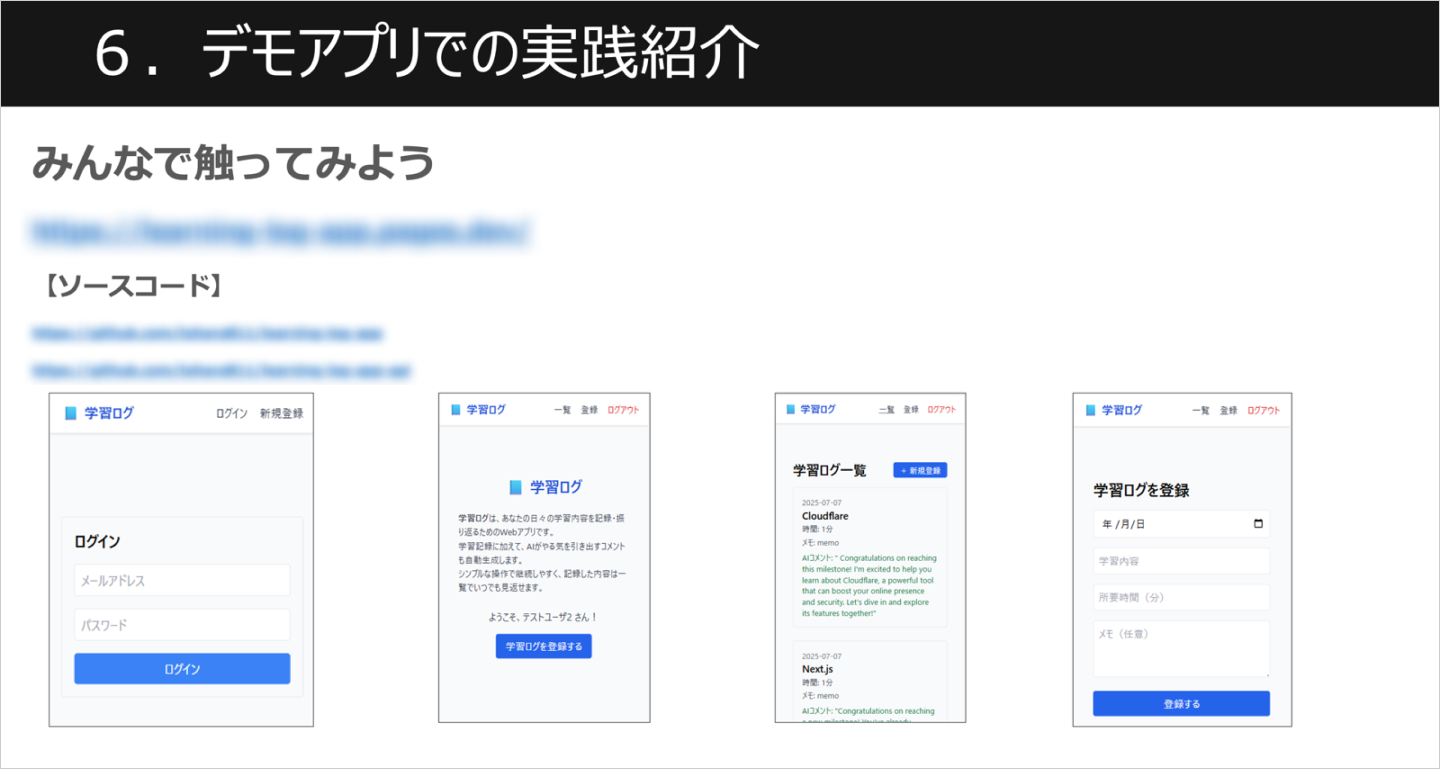 実際にOさんが行った個人開発における、Cloudflareを活用した環境構築、そして生成AIを組み合わせた開発手法について紹介いただきました。実際のアプリも紹介され、とても実践的な内容でした。