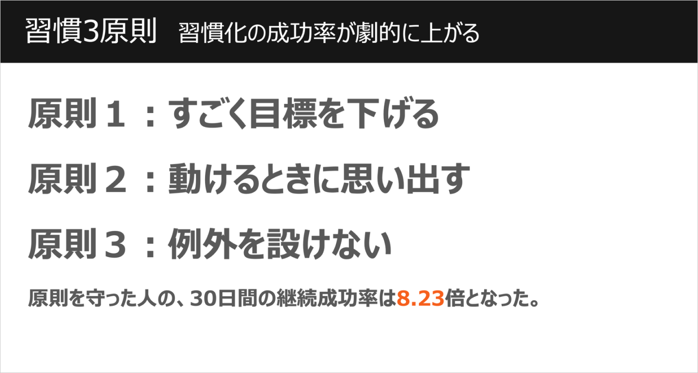 習慣三原則:目標を小さくする・動けるときに思い出す・例外を設けない