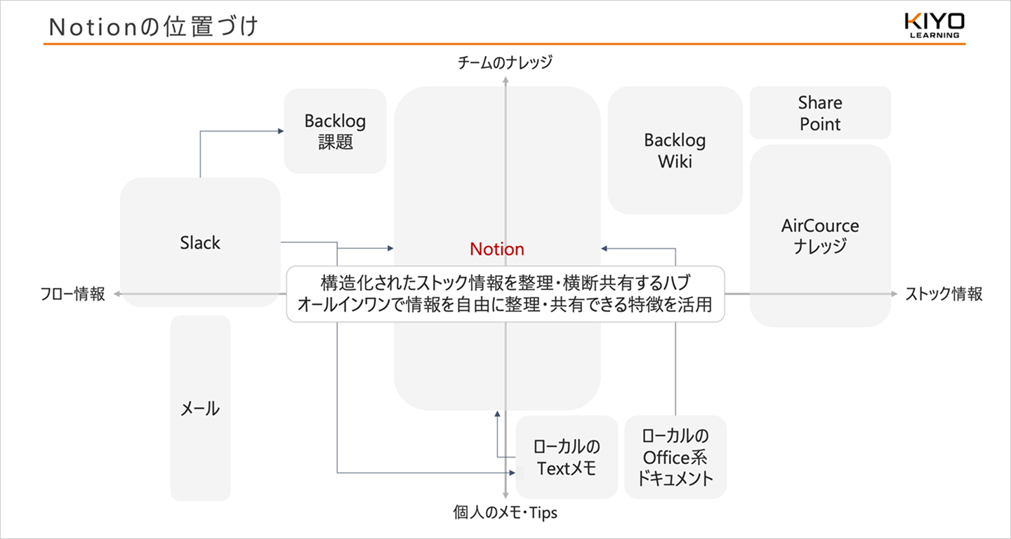 → Notionをハブとして活用することで情報の横断共有を容易にする