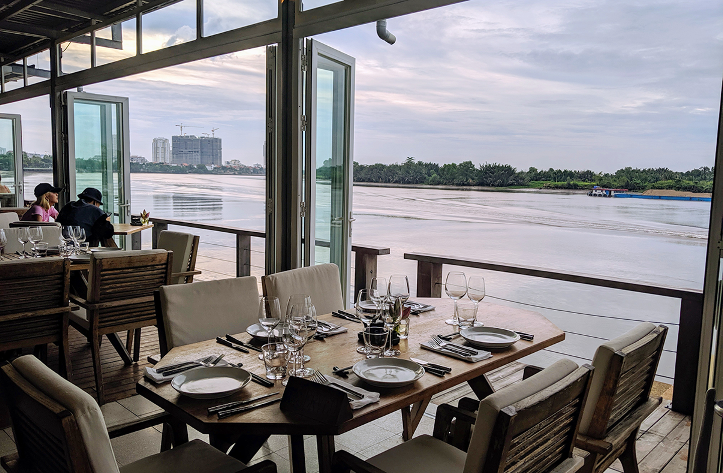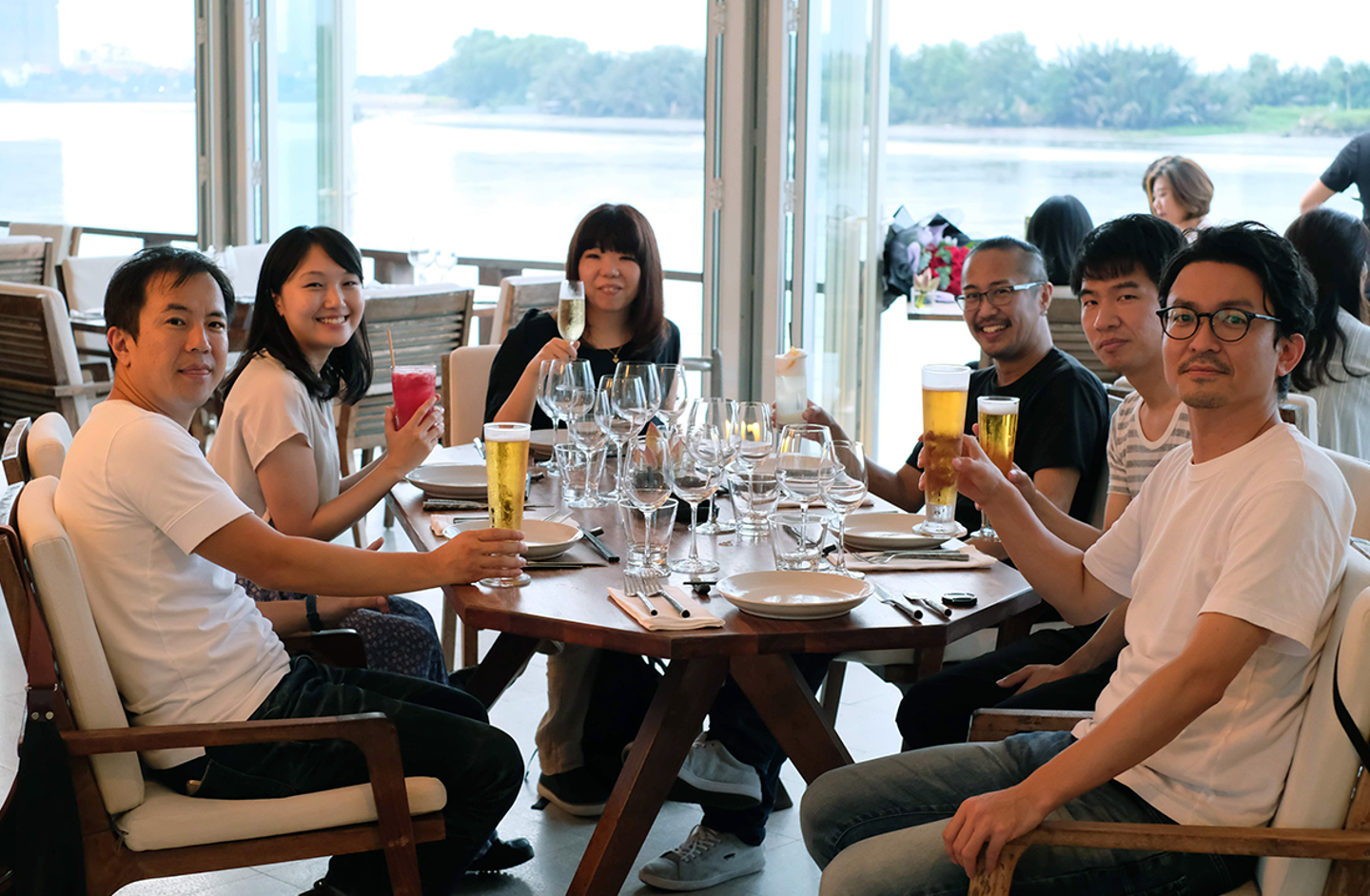 菅藤の"アジアで一番お気に入り"のレストランで、サイゴン川のサンセットを見ながらディナーです。最高!エンジニアの萩野と平嶋は、このベトナム出張がなんと人生初の海外。慣れない環境で緊張気味の二人に、菅藤と横井が色々質問を投げかけていました。