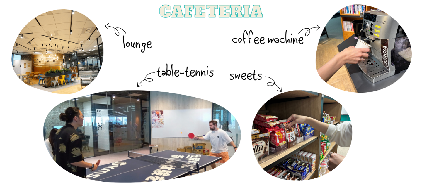 - カフェ風のオフィス空間で、リラックスしながら仕事できる