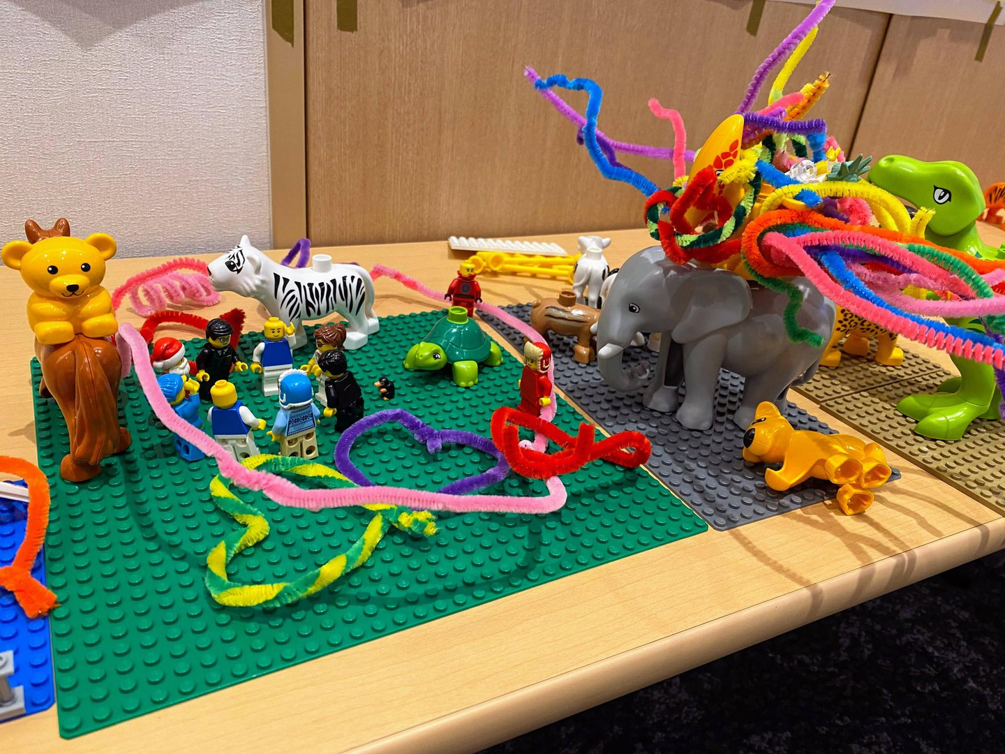 価値観を形にしたレゴワーク。個性あふれる様々なものができました。こちらはあるグループが作った「会社の未来に向けて残したい価値観」