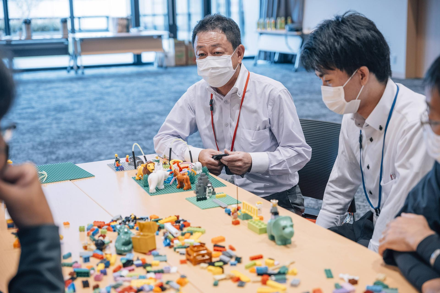 二人一組になって今までの会社人生やこれからの組織で大切にしたい価値観を話してもらったり、会社の未来に向けて持っていきたい価値観を形にするレゴワークをしたり。