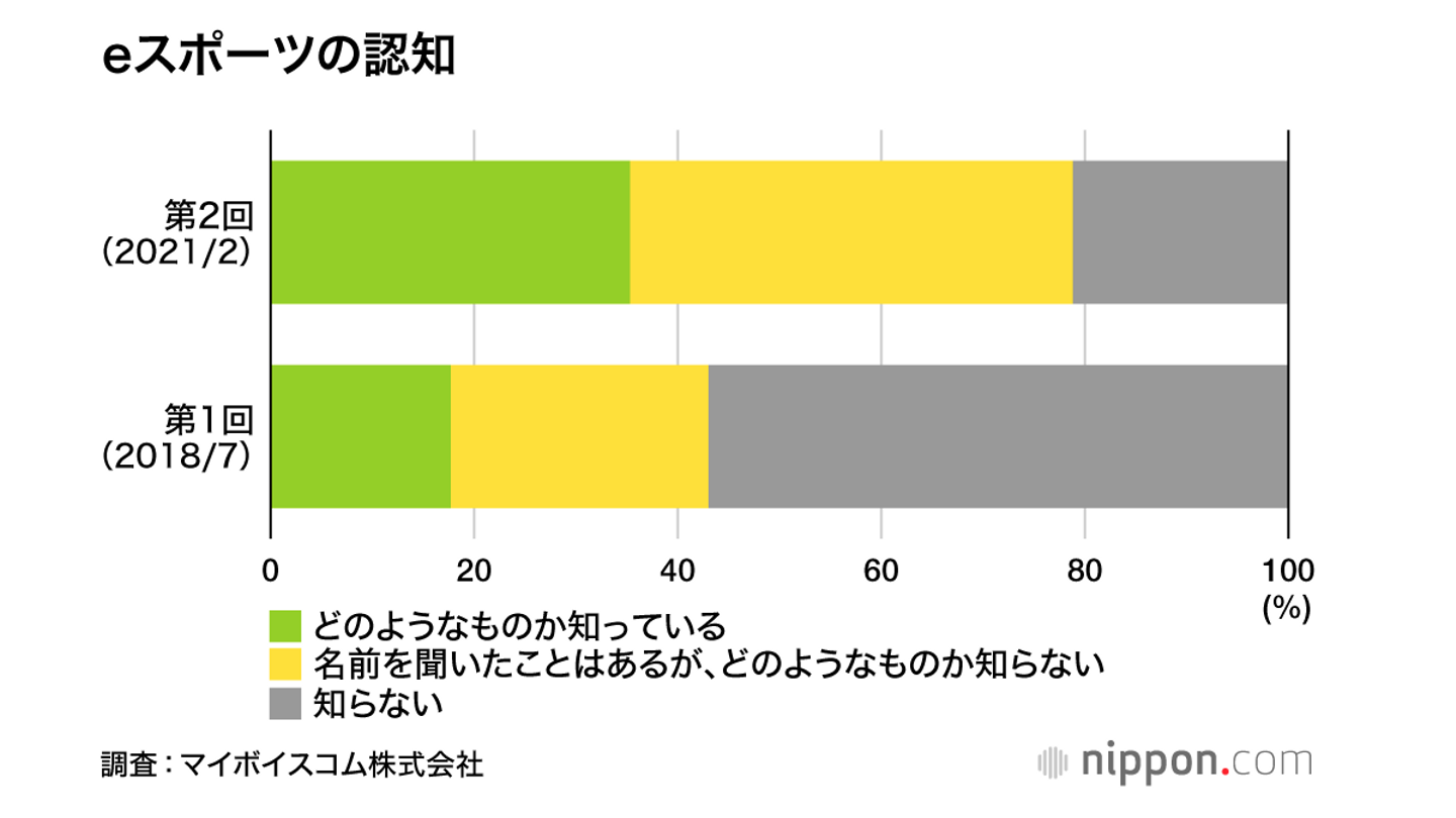 2021年2月の民間調査会社マイボイスコムのeスポーツに関するリサーチだと、こんなデータが出ています。(引用元:nippon.com)