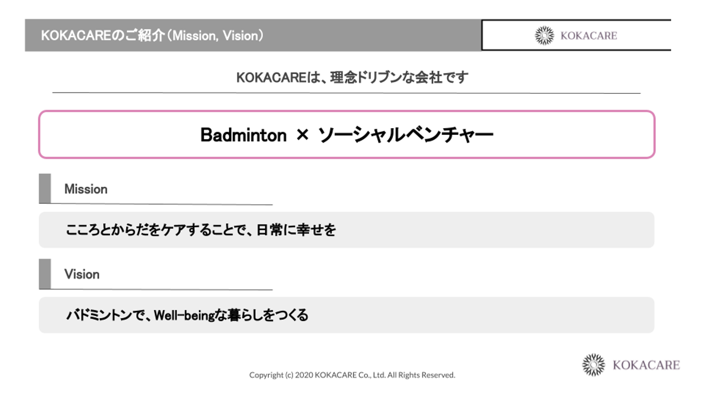 我々も、バドミントンを通して社会課題を解決していく会社です。
