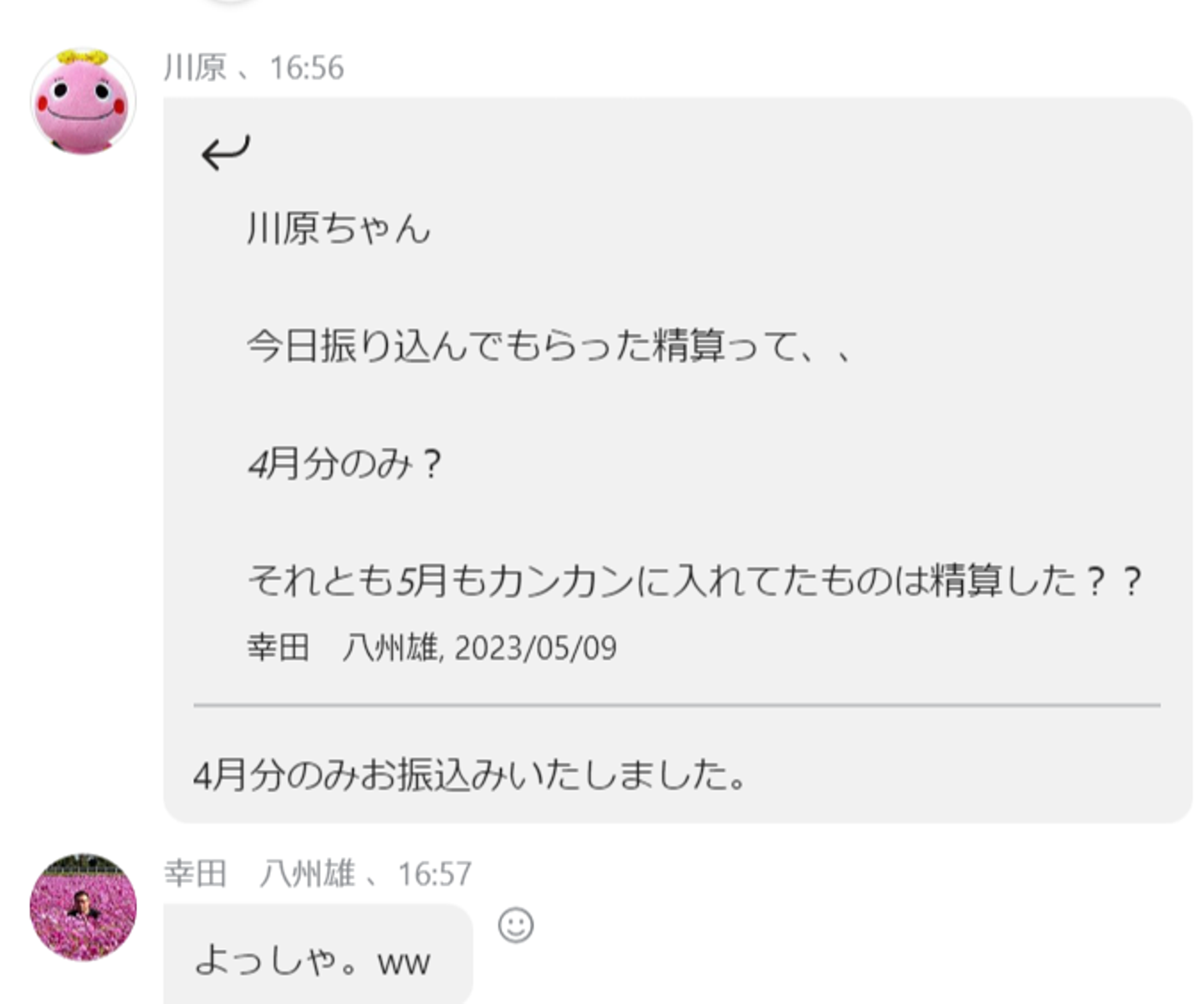 社長の「あと1週間を5000円で凌がんないけん」という発言は本当に頻繁に聞くのですが、そのたびに「こういうことを楽しげに話せる社長っていいな~」と思います。