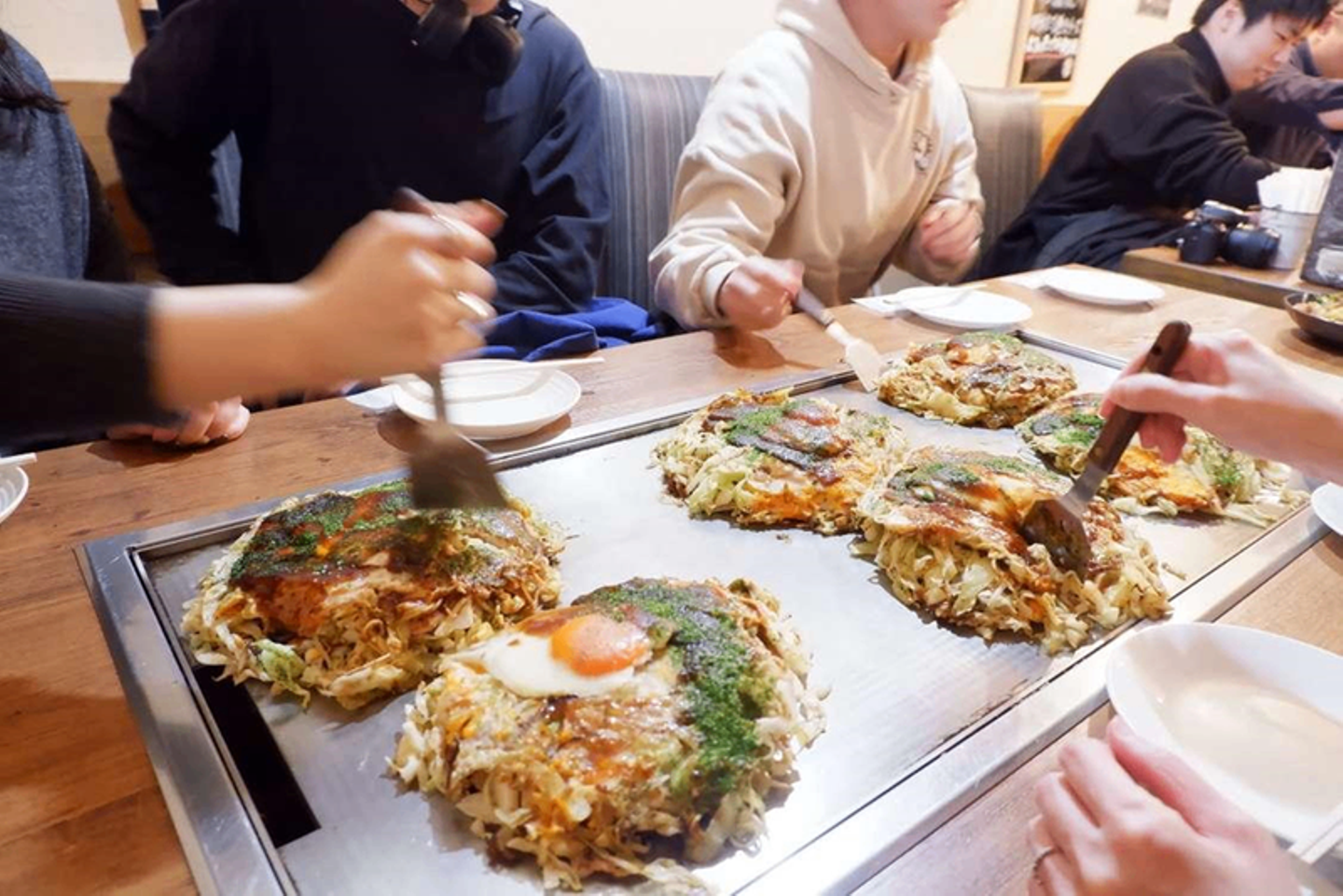 すでに注文してあったお好み焼きがすでにテーブルにたくさん積みあがっていました。まるで建造物です。