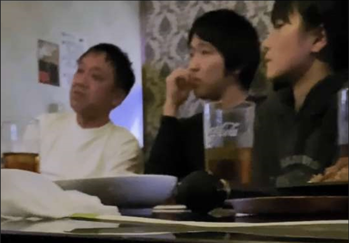 ※隠し撮りより。不穏な空気(左が仕掛け人の熊谷、真ん中がターゲットのヤマちゃん)