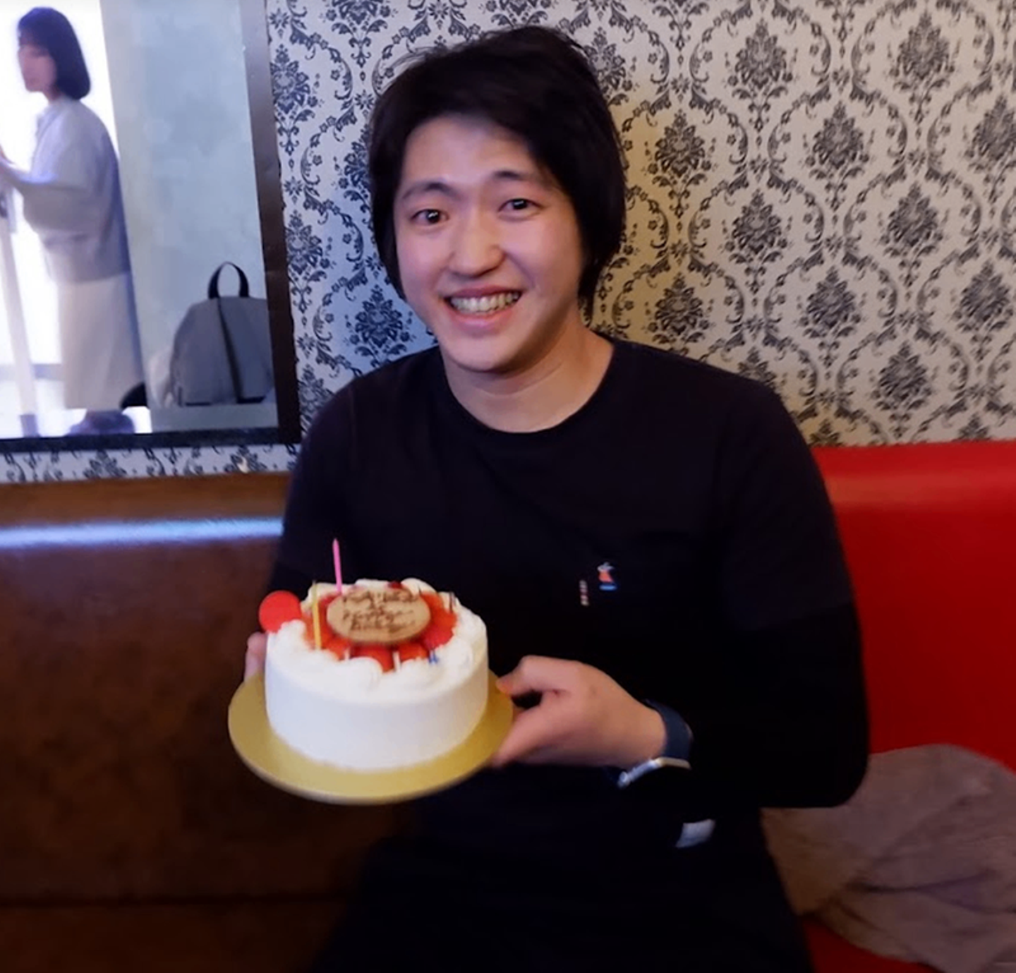 ※誕生日ケーキを持ち、嬉しそうなヤマちゃん