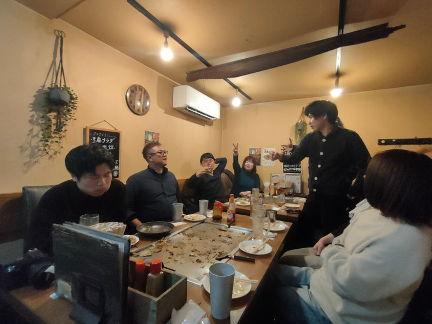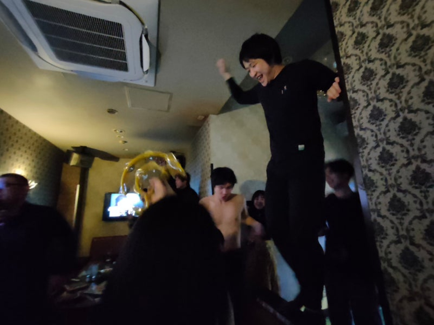 ※一次会会場。まだ楽しそう。この後ターゲットとなるヤマちゃん(写真左後ろ)とW仕掛け人が写ってる奇跡ショット
