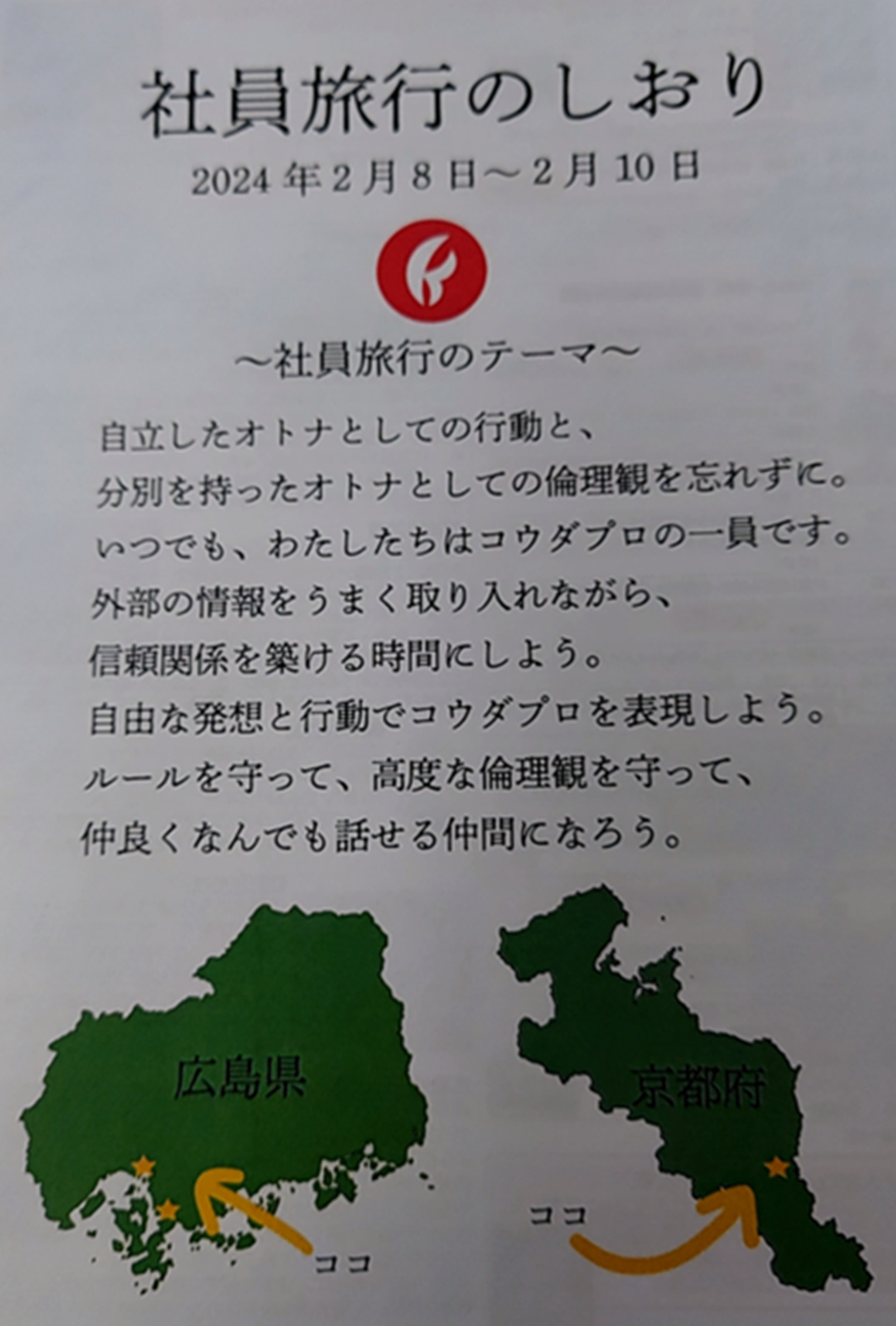 私たちコウダプロは、2024年2月8日~10日で2泊3日の社員旅行に行ってきました!