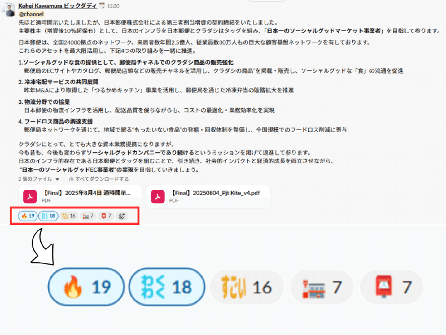 ▽8/4 河村さんから発信された社内向け情報発信のメンバーからの反応