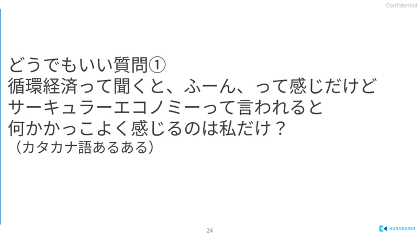 実際、勉強会を開催してみて、ありがたいことにメンバーから「面白かった!」「勉強になった!」と高評価をいただき(と、私は感じた)、改めてクラダシメンバーの社会課題やサステナビリティへの関心の高さと温かさを感じました。