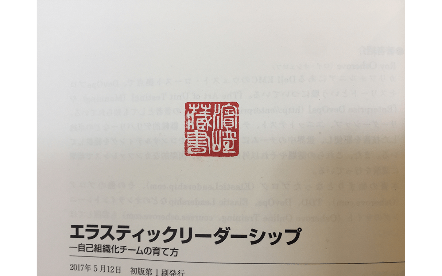 持ってきた本の管理については、各々捺印するなどして誰のものかわかるようにしています。マネージャーの濱崎は、本棚が作られた日の夜、書道家の奥さんに素敵な蔵書印を作ってもらっていました。