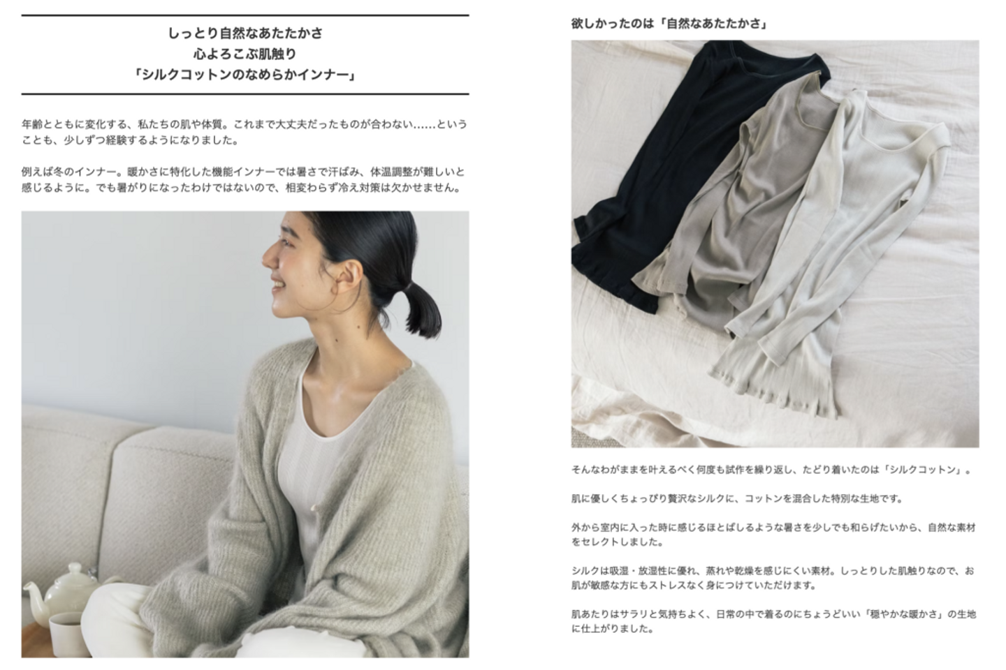 そうすると、さらにプレスリリースで書くことが明確になってきました。例えば、同じ「はじめての下着販売」をお知らせする際でも、商品ページ担当と私はほぼ同じタイミングで、同じように開発担当に話を聞いたにもかかあわらず、これだけ違うアウトプットになります。